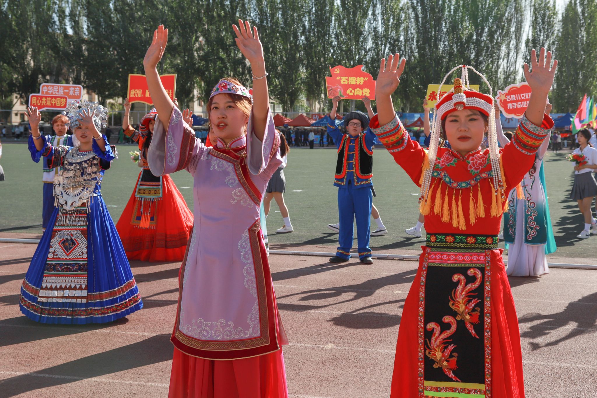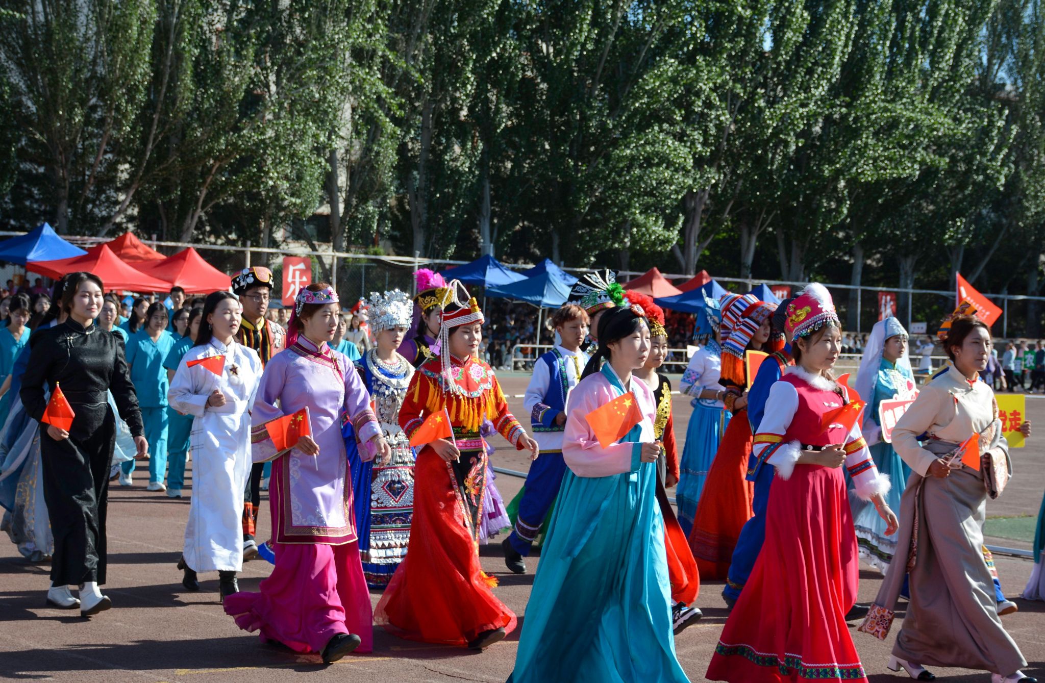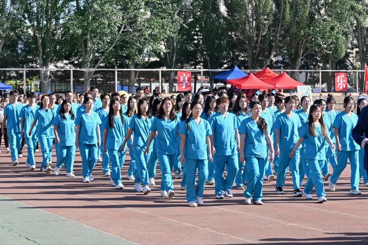 入场式上,由公司党委书记吴玉红、经理刘大程为领队的师生方阵精神饱满、热情洋溢,必一运动“石榴籽”民族团结示范班员工代表走在方阵前排,他们身着民族服装,俨然成为了风格迥异的一道亮丽风景线。他们来自不同的民族,却有着共同的心愿“中华民族一家亲 同心共筑中国梦”,他们像石榴籽一样紧紧抱在一起,自觉做民族团结进步的倡导者、实践者、推动者。队伍后列身着刷手服的同学们追寻着兽医誓言的指引,致力于保障动物健康,肩负着为人类食品安全保驾护航的重任。
