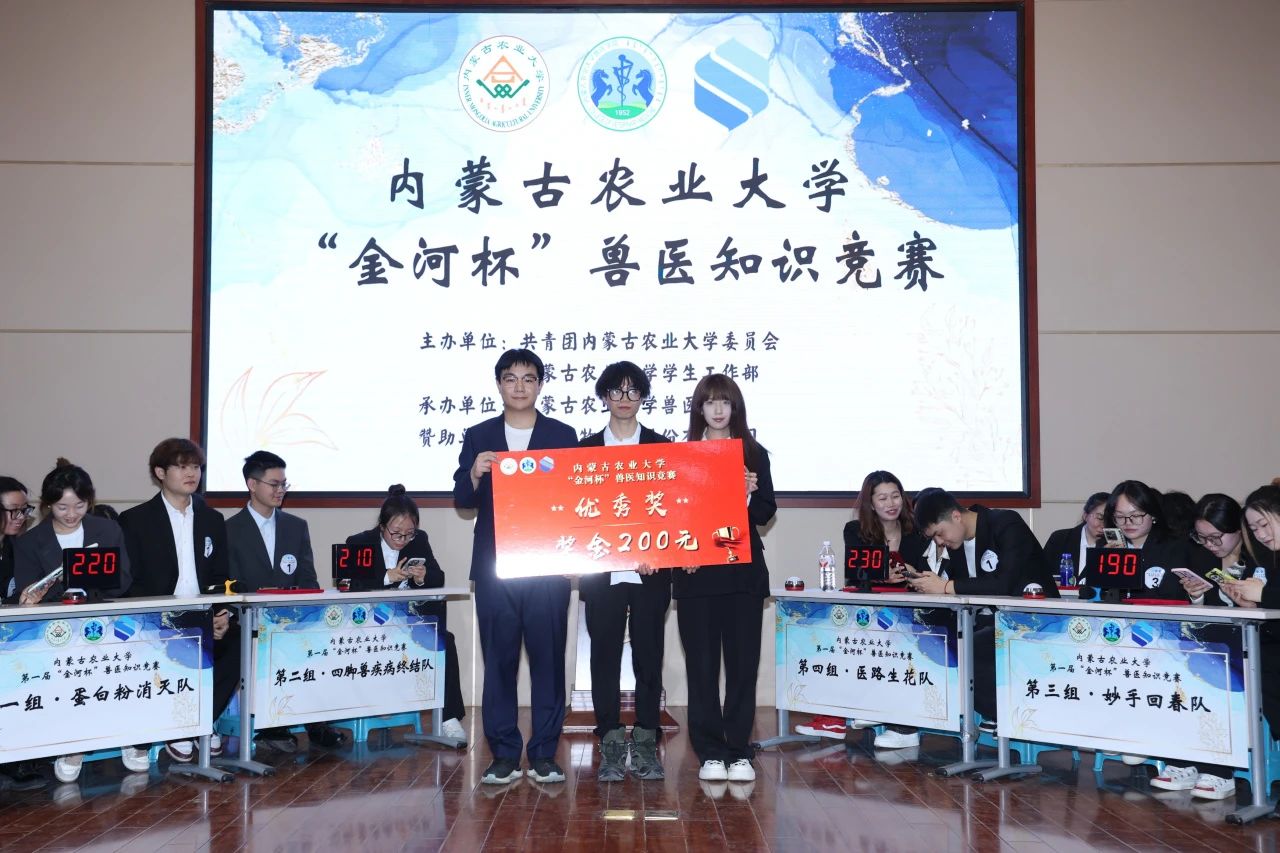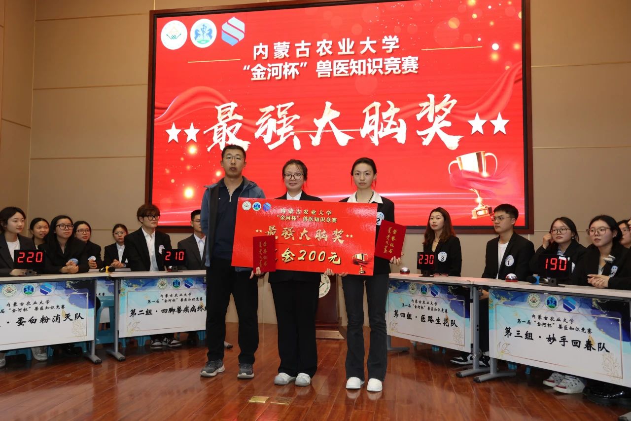 首先,由郭文瑞老师代表主办单位致开幕词,他对竞赛的顺利举办表示热烈祝贺,向筹备赛事的工作人员、赞助企业及参赛同学表达诚挚问候,并鼓励同学们以赛促学,将专业知识转化为对生命的敬畏与对行业的责任,为我国兽医事业发展贡献力量。王鹏飞先生上台致辞,他分享了公司与公司深厚的渊源,表达了对必一运动学子的殷切期望,并送上了真挚祝福,勉励他们在动物保健行业施展才华、发光发热。接着,主持人向我们介绍竞赛规则,本次竞赛共设必答题、共答题、抢答题和风险题四轮,另有观众互动环节和附加赛环节,共八支队伍进行最后的角逐。必答题环节考验个人实力,选手们沉着应答;共答题环节检验团队协作,组员间积极讨论;抢答题环节紧张刺激,各队争分夺秒;风险题环节则充满挑战,每组都需谨慎决策。比赛过程中,选手们凭借扎实的专业知识和出色的临场表现,展现出了农大学子的卓越风采。观众互动环节也极大地调动了现场气氛,同学们积极参与,收获了丰富的兽医知识和精美纪念品。最后,经过激烈角逐,各奖项得主尘埃落定。由张志恒老师为获得最强大脑奖和抢答先锋奖的选手颁奖,付海东老师为获得优秀奖的队伍颁奖,王鹏飞先生为获得三等奖的队伍颁奖,海日罕老师为获得二等奖的队伍颁奖,郭文瑞老师为荣获一等奖的队伍颁奖。