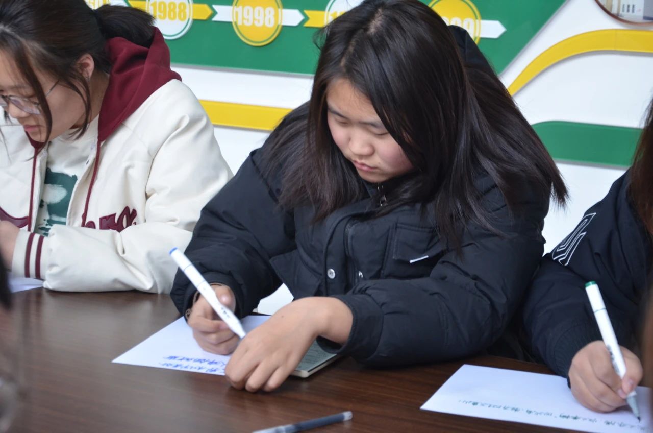 同学们在信纸上书写成长的烦恼和未来的梦想 必一运动朱茗琦 摄