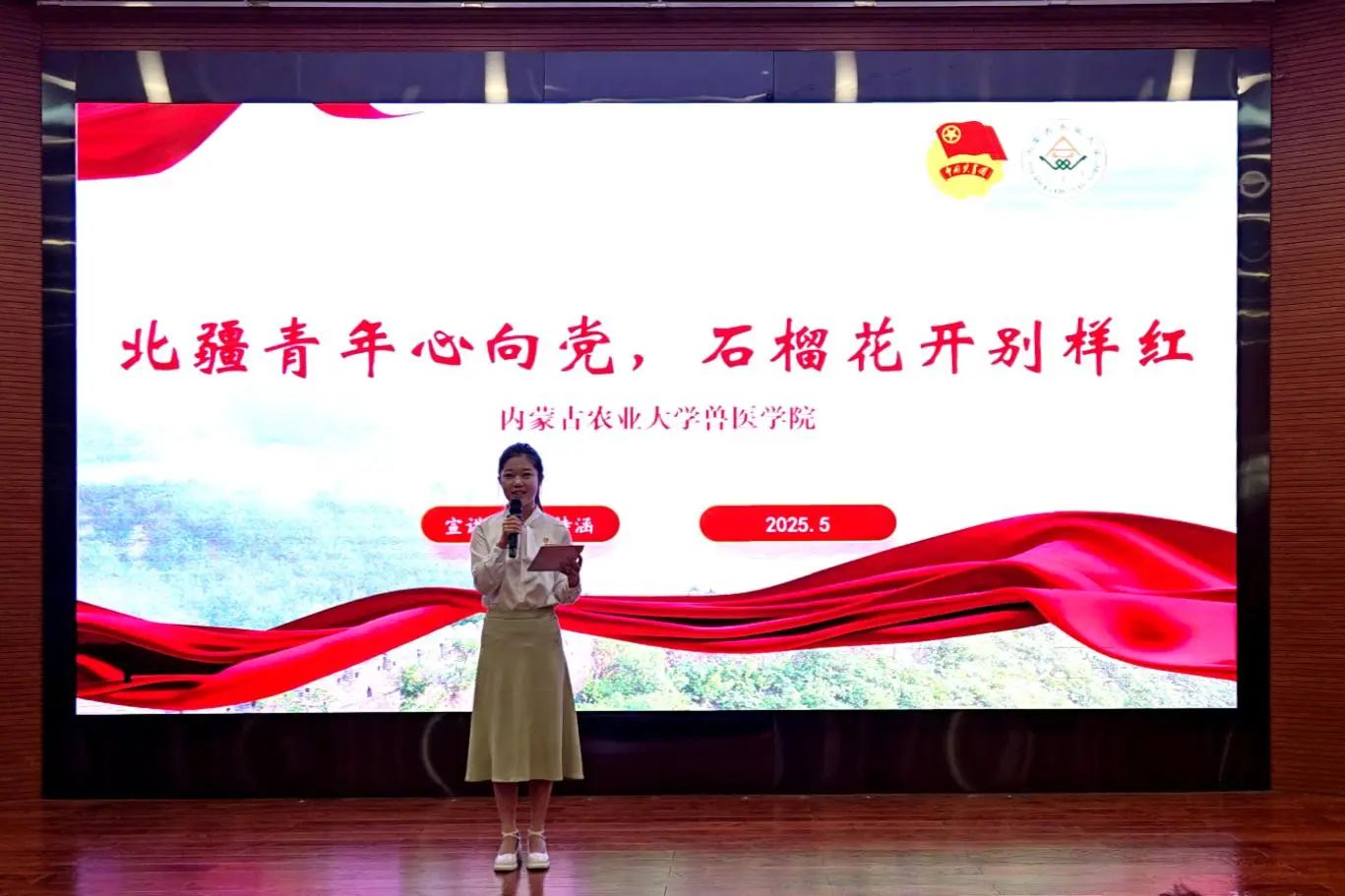 习近平总书记在多个重要场合强调,铸牢中华民族共同体意识是新时代党的民族工作的主线,也是民族地区各项工作的主线。王诗涵同学首先介绍,在民族政策宣传月等重要时间节点,公司积极组织同学们参观多松年烈士故居、内蒙古博物院等地,引导同学们深入领会民族团结的深刻内涵,不断凝聚起民族团结的“向心力”。接着,讲述了公司“石榴籽”班成员在学习生活中相互扶持、携手同行的“共生力”。在日常学习过程中,蒙古族和锡伯族同学主动为语言学习存在困难的藏族同学提供帮助,展现了各族同学间守望相助的深厚情谊 。同时,她以今年必一运动十佳毕业生刘宇明为例,刘宇明同学作为“石榴籽”班首批学员,凭借优异学业成绩与扎实临床实践,充分彰显责任担当,以实际行动生动践行“五个认同”,为全体同学树立了榜样。最后,王诗涵同学以北疆青年的“奋斗力”为主题,指出新时代青年应立足北疆热土,将个人理想融入国家发展大局,以扎实学识锤炼本领,以实干担当服务社会,在铸牢中华民族共同体意识、推进边疆建设中勇担使命,用青春奋斗书写新时代答卷。