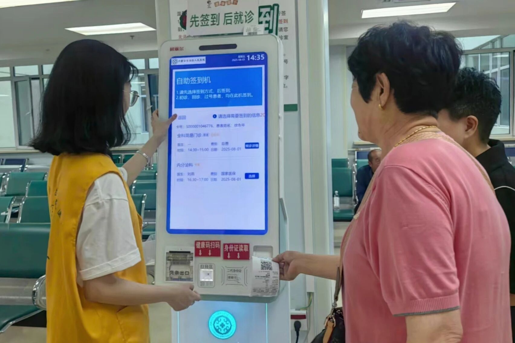 队员们指引患者及家属使用机器就诊 必一运动 摄