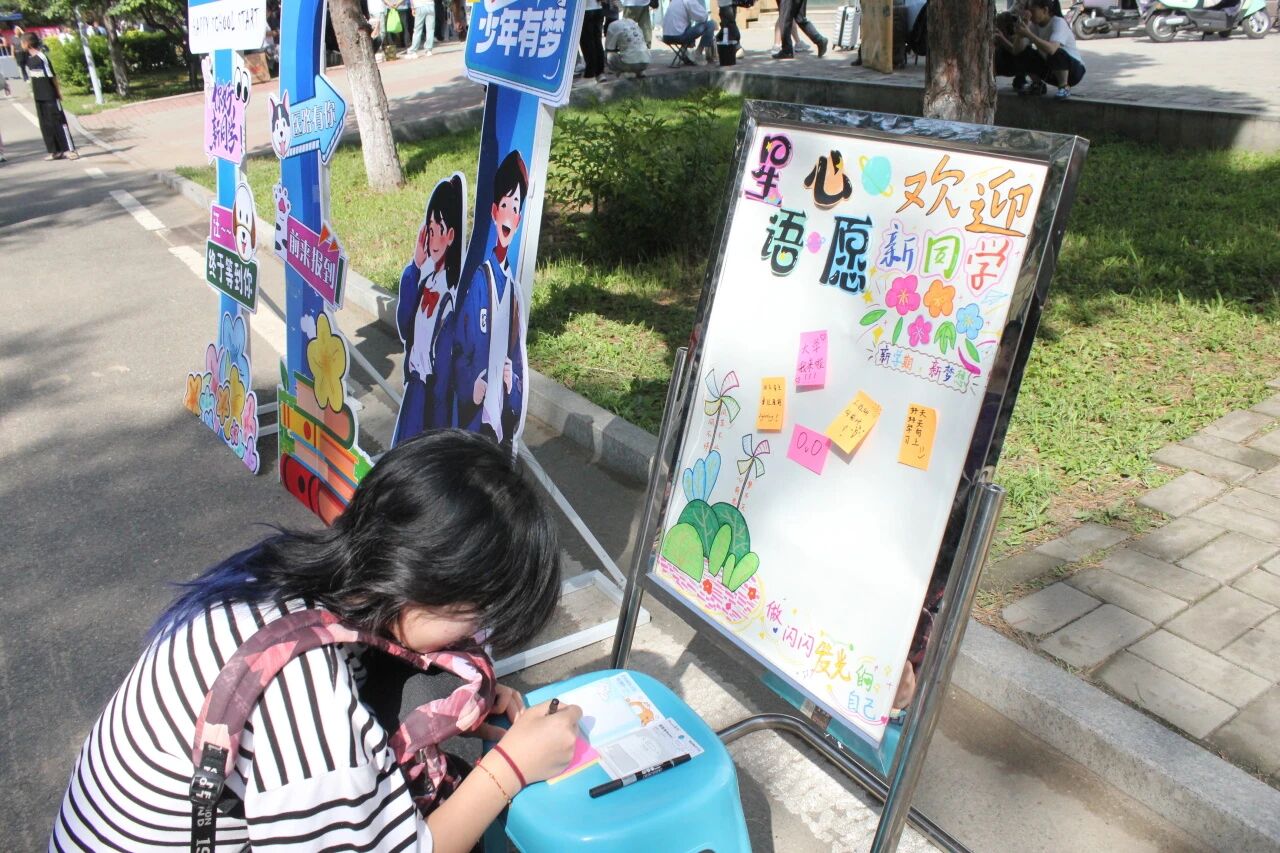 新同学写下未来寄语并留影 必一运动王艺凝 摄