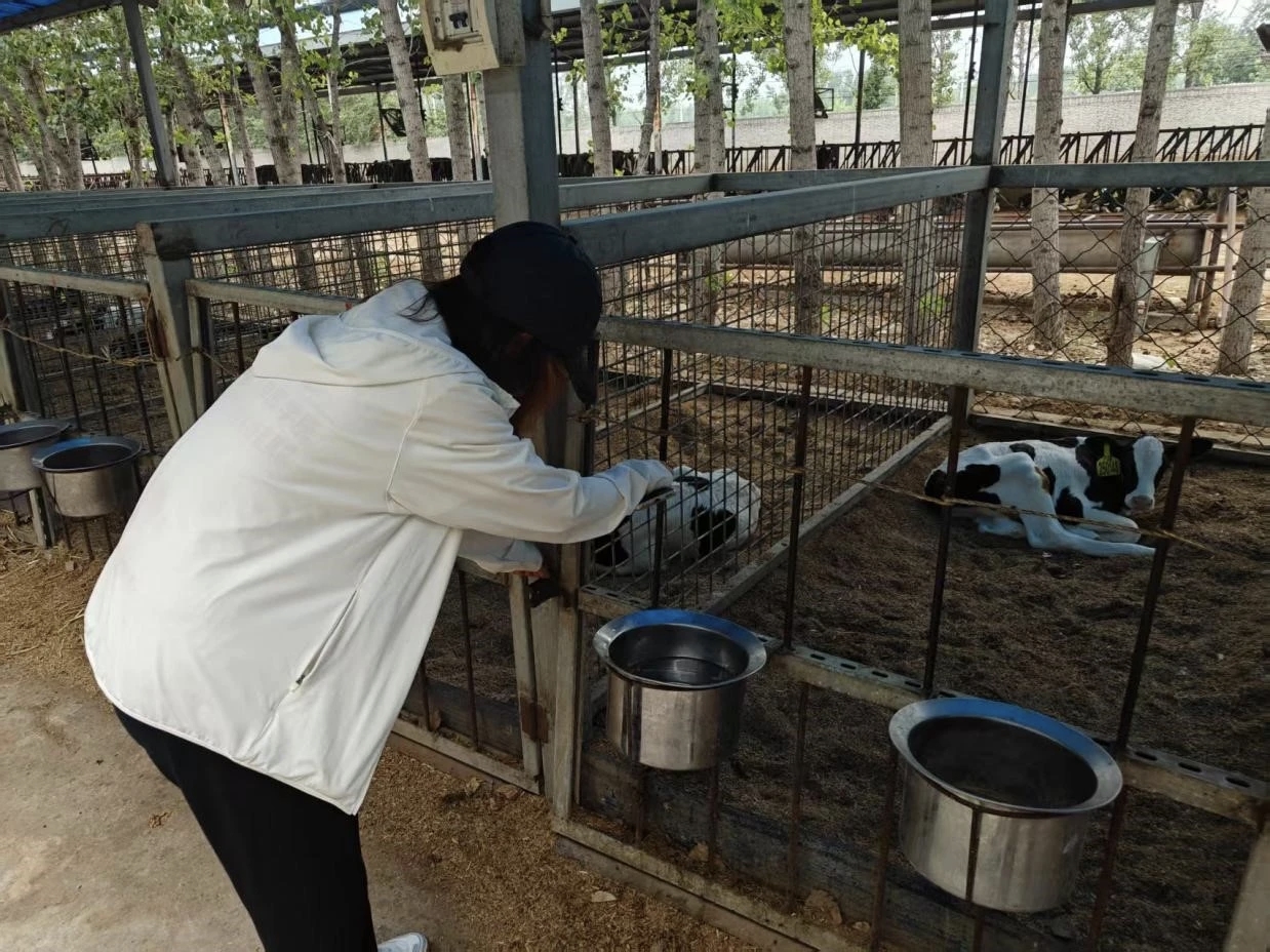 8月2日,小队成员们再次来到牛舍,重点观察犊牛和成年牛的进食情况及健康状况。犊牛是牧场的未来,其生长发育直接关系到未来的产奶能力,因此需要格外关注。队员们注意到,犊牛区与成年牛区采取了不同的饲养方式:犊牛采用单独隔栏喂养,以避免互相争食,并降低疾病传播风险;而成年牛则采用群养模式,便于统一管理。