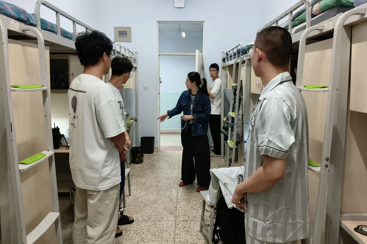 走进宿舍后,老师们亲切与新生交流,仔细询问他们的家乡籍贯、入学感受及生活适应情况,认真查看宿舍设施是否完备,并叮嘱同学们遇到困难可及时向公司反映,公司会根据家庭实际情况提供帮扶支持。针对心理健康与同学关系等问题,老师们也主动倾听新生心声,引导大家积极融入集体生活。