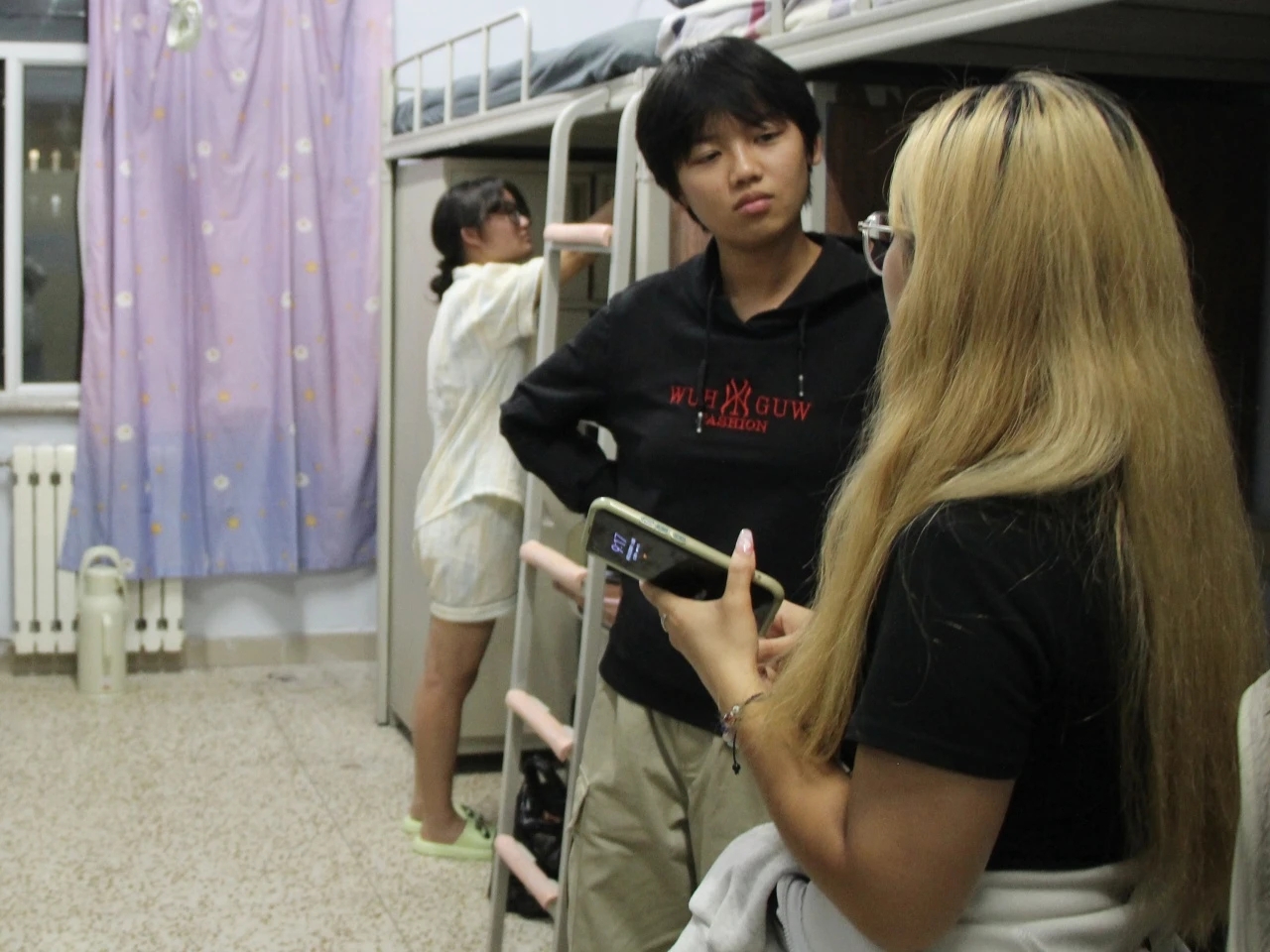 员工干部为新生讲解内务要求 必一运动周蒙 摄