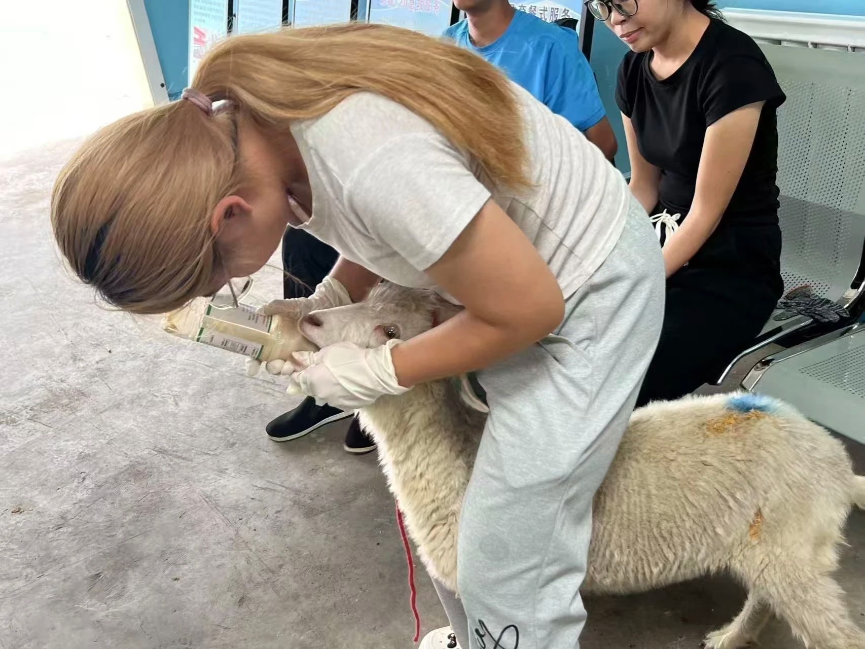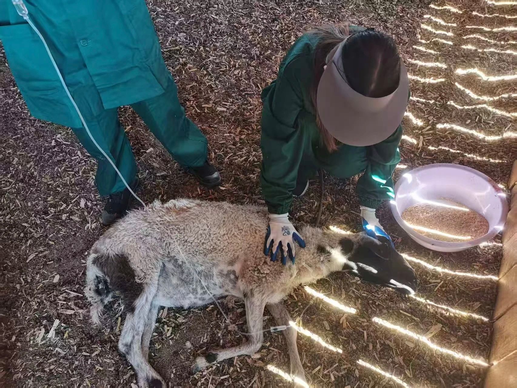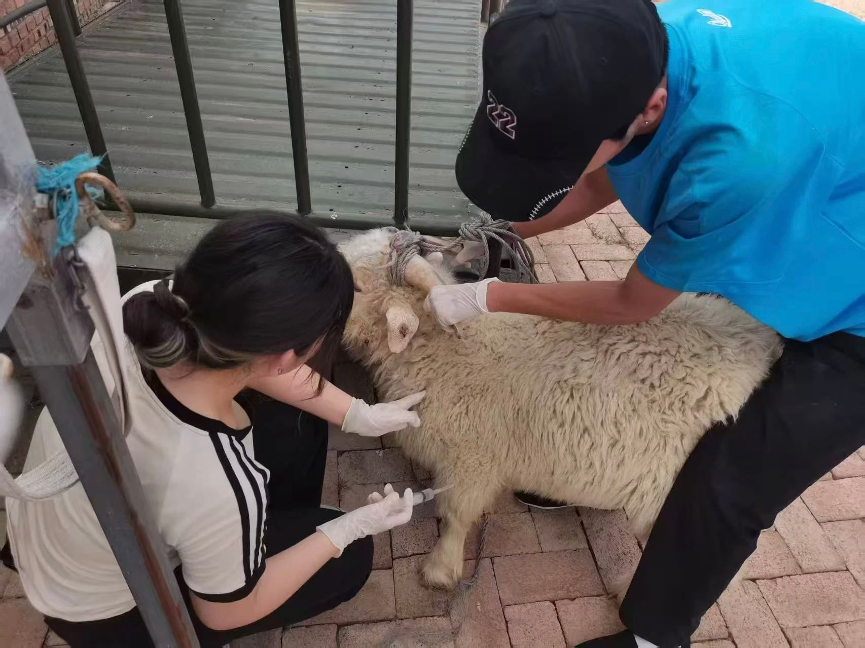 直属队队员们对羊进行治疗 必一运动 摄