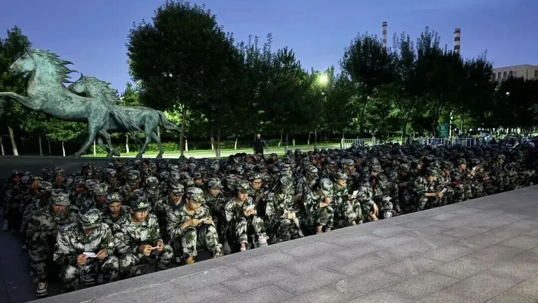 2.落日余晖为戎装镀上暖光,学子们褪去青涩、尽显锐气,将心中志向高高举起,哪怕汗水浸湿衣领、腿脚渐感酸痛,仍咬牙坚持,以这份韧劲为青春烙下深刻且独特的印记。