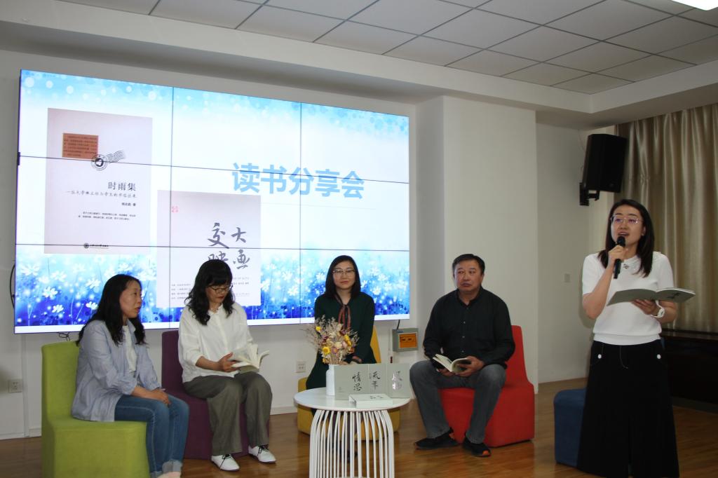 接着,杜雅楠老师朗诵了杨志彪员工专门为B-Sports成立70周年撰写的贺词,对杨志彪员工的文学素养、文化内涵和母校情怀给予了高度的肯定。工会主席刘芳分别介绍了杨志彪员工的两本著作《时雨集》和《交大印画》。王彩云老师朗读分享了《时雨集》中杨志彪员工对时间的感悟,让在场教职工感受到了他对生活的热爱和享受。王怡靖老师朗诵了杨志彪员工关于毕业生的诗《青春不散场》,将在场所有人带入了青春的回忆,使青春的气息和母校情怀满场弥漫。吉林台老师分享自己阅读后的感触,高度的赞扬了杨志彪员工的教育方式和方法,坚定了帮助员工树立远大理想和明确目标的使命和信心。徐斯日古楞老师谈到了阅读后对班主任工作的共鸣,对杨志彪员工细致的班主任工作予以了高度的认可和欣赏。