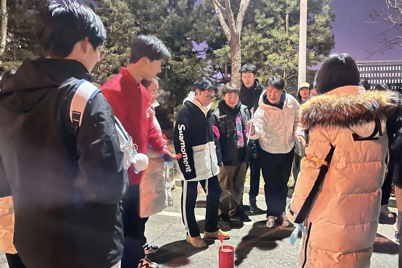 活动伊始,工作人员为青马班学员发放荧光手环,待所有参赛成员佩戴好荧光手环后,按照名单安排将其分为八个小组进行比赛。接着在工作人员下令宣布活动开始后,各小组按照游戏顺序分别来到经管院、南教、生科楼、操场前完成“爱的魔力转圈圈”“投壶”“夹气球”“风火轮”这四项考验,并领取相应的标记物,获得四个标记物且用时最短到达终点的小组获胜。在激烈地角逐下,本次活动的前三名也随之出现,在工作人员为其发放奖品后,全体成员合影留念,伴着大家的欢声笑语,本次荧光夜跑活动顺利落下帷幕。