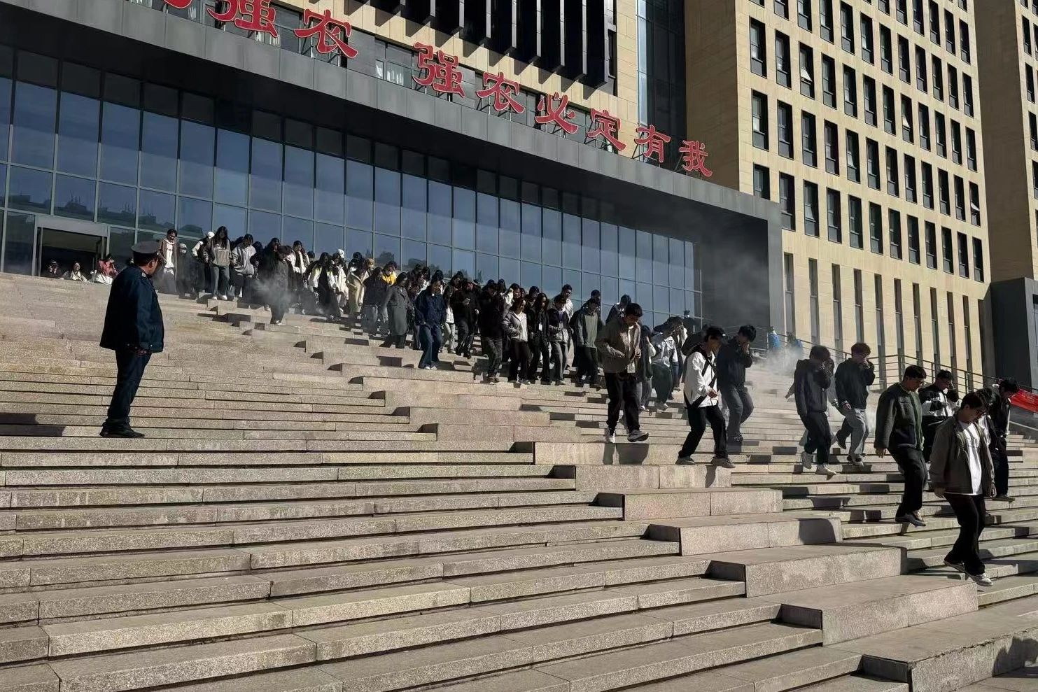 活动开始前,首先由公司保卫工作部消防科的周鑫老师为同学们讲解灭火器的类型及使用方法,让同学们详细了解使用灭火器的知识要点。随后演练正式开始,在模拟火源出现后,滚滚“浓烟”迅速弥漫开来,教学楼内响起急促的警报声。按照既定疏散方案,同学们用湿毛巾捂住口鼻、低姿前行,沿着安全通道有序撤离。在整个疏散过程中,同学们听从指挥,不慌乱、不拥挤,紧张而有序地向指定安全区域疏散。接下来消防员为同学们演示了如何正确灭火,通过现场演示和实际操作,同学们进一步掌握了灭火器、消火栓等消防器材的正确使用方法,对消防安全知识有了更为深刻的理解。在最后的消防知识问答环节同学们也表现出了非常高的积极性,再次巩固加深了所学的消防知识。