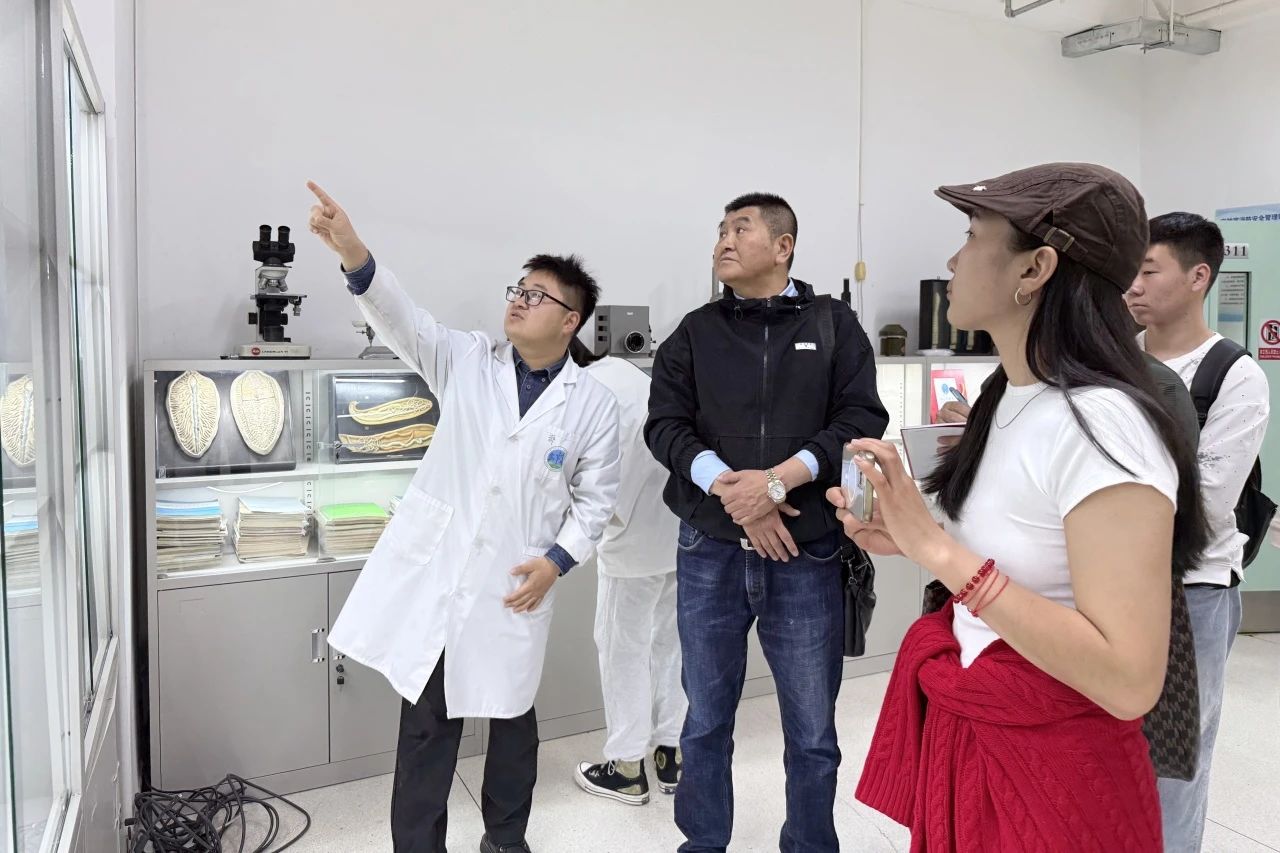 随后,在金山、王怡靖等老师的陪同下,访学团参观了公司的冻干标本室、病理标本室和寄生虫标本室。在冻干标本室,王彩云老师围绕公司家畜解剖学实验室首创的大动物整体冻干标本技术,对标本的来源、特点以及在教学科研中的重要价值等向访学团做了重点介绍。来到病理标本室,丁玉林老师向访学团介绍了公司动物病理标本室积累的1千多件大体标本、10万多张病理切片以及1万2千余例病理资料,这也是目前国内保存最完整、最大的动物病理标本资源库。在寄生虫标本室,贾志鹏老师分门别类介绍了公司丰富的标本和各种仪器设备的用途。最后,访学团前往生命科学楼一楼大厅参观草原野生动物馆,在草业公司李鑫老师的引领和细致讲解中,参观了内蒙古地区各种稀有野生动物标本和数字化影像,帮助大家更深入了解了这些动物的生态习性和保护现状。