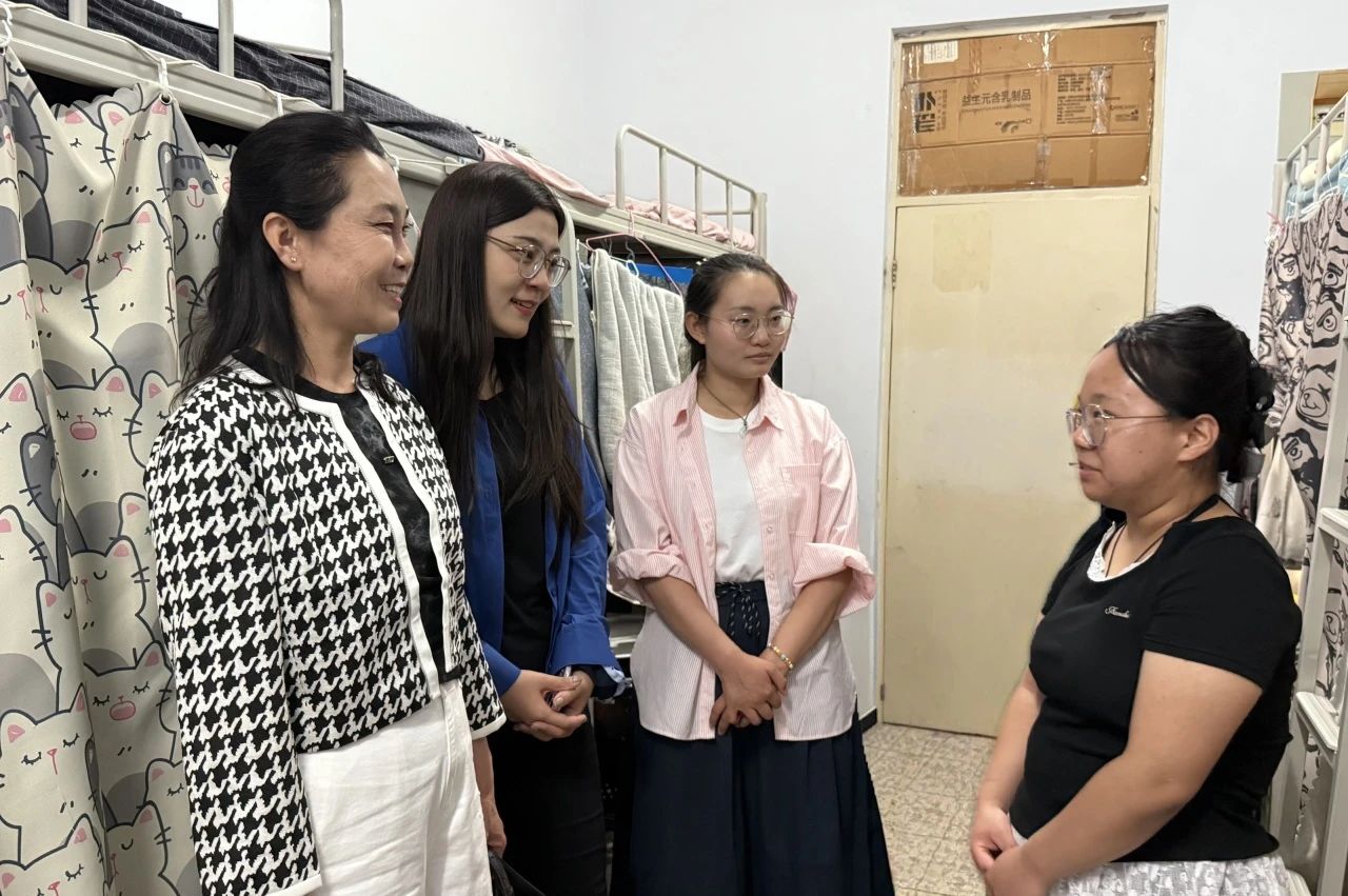 为全面掌握2025届毕业生就业动态,切实解决员工在生活及求职中面临的实际问题,6月10日晚7:30公司党委书记吴玉红,必一运动辅导员王永琴、郭锳洁老师深入南区宿舍楼,对毕业班宿舍开展走访慰问工作。