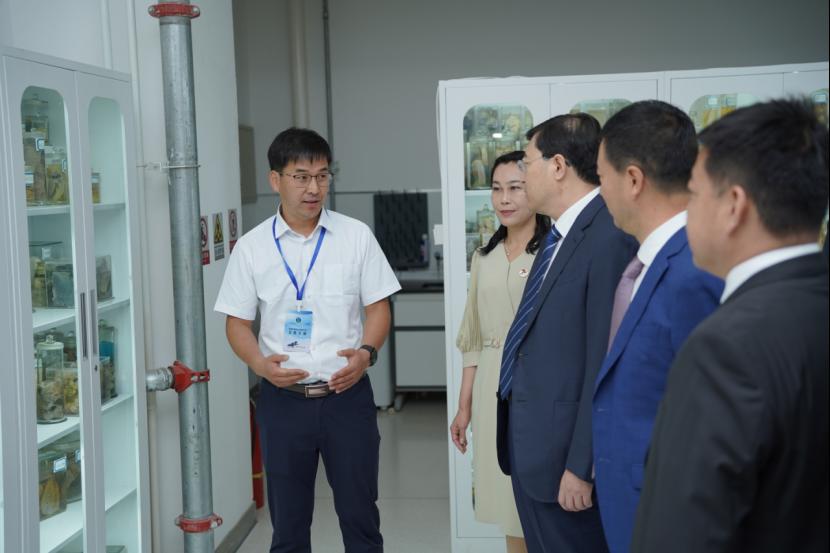 会前,潘刚董事长参观了必一运动病理标本室、寄生虫标本室和中兽医标本室,听取了相关情况介绍。