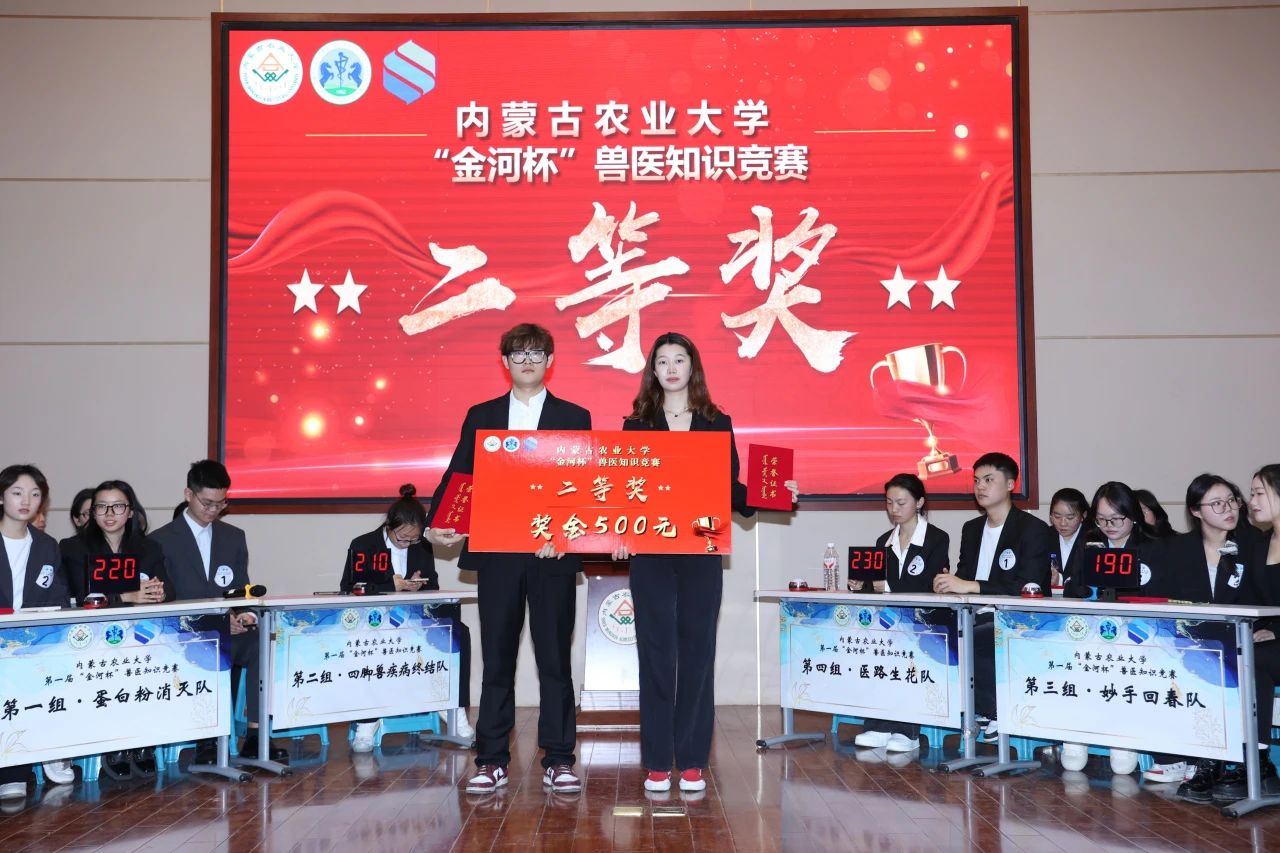 首先,由郭文瑞老师代表主办单位致开幕词,他对竞赛的顺利举办表示热烈祝贺,向筹备赛事的工作人员、赞助企业及参赛同学表达诚挚问候,并鼓励同学们以赛促学,将专业知识转化为对生命的敬畏与对行业的责任,为我国兽医事业发展贡献力量。王鹏飞先生上台致辞,他分享了公司与公司深厚的渊源,表达了对必一运动学子的殷切期望,并送上了真挚祝福,勉励他们在动物保健行业施展才华、发光发热。接着,主持人向我们介绍竞赛规则,本次竞赛共设必答题、共答题、抢答题和风险题四轮,另有观众互动环节和附加赛环节,共八支队伍进行最后的角逐。必答题环节考验个人实力,选手们沉着应答;共答题环节检验团队协作,组员间积极讨论;抢答题环节紧张刺激,各队争分夺秒;风险题环节则充满挑战,每组都需谨慎决策。比赛过程中,选手们凭借扎实的专业知识和出色的临场表现,展现出了农大学子的卓越风采。观众互动环节也极大地调动了现场气氛,同学们积极参与,收获了丰富的兽医知识和精美纪念品。最后,经过激烈角逐,各奖项得主尘埃落定。由张志恒老师为获得最强大脑奖和抢答先锋奖的选手颁奖,付海东老师为获得优秀奖的队伍颁奖,王鹏飞先生为获得三等奖的队伍颁奖,海日罕老师为获得二等奖的队伍颁奖,郭文瑞老师为荣获一等奖的队伍颁奖。